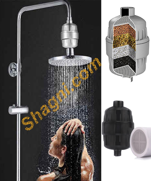 The filter is five stages which ensure cholorine, synthetic chemical, iron and salt. The shower filter makes water soft from by removing hard materials from sources of waater.